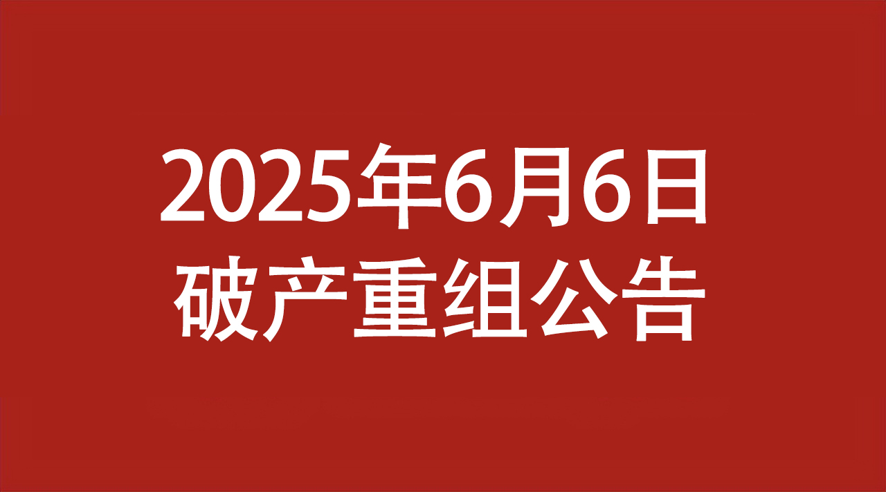 根据人民法院公告网显示,2025年6月6日,全国共有1家房地产相关企业申请破产、被终止破产或破产重组。