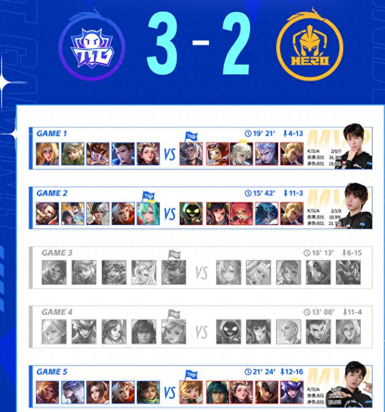 TTG终于赢了,3-2战胜hero久竞,这场比赛的首发依旧是清清小白熊和小雪,虽然过程有波折,但结果还是好的,久哲战胜了自己的老东家,TTG也还有不打卡位赛的机会。
