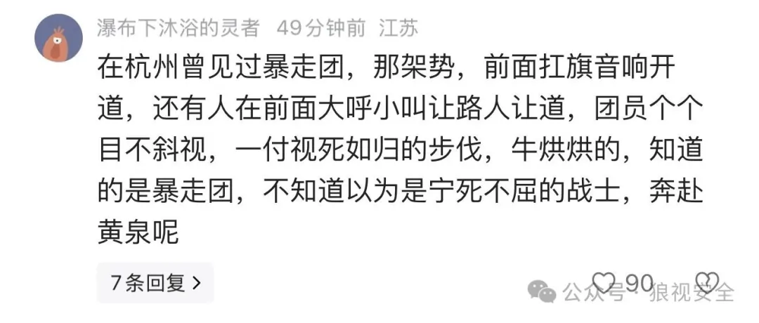 当地派出所对此回应称,老年“暴走团”的行为是素养问题,会联系负责人进行批评教育。