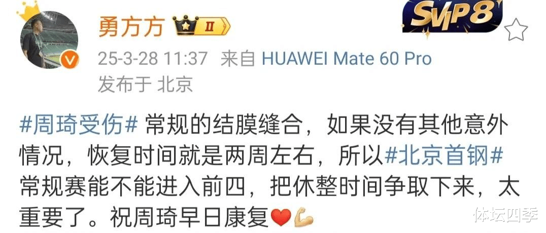 大家对周琦的伤势和北京首钢队的未来有什么看法呢?欢迎在评论区留言,一起讨论!