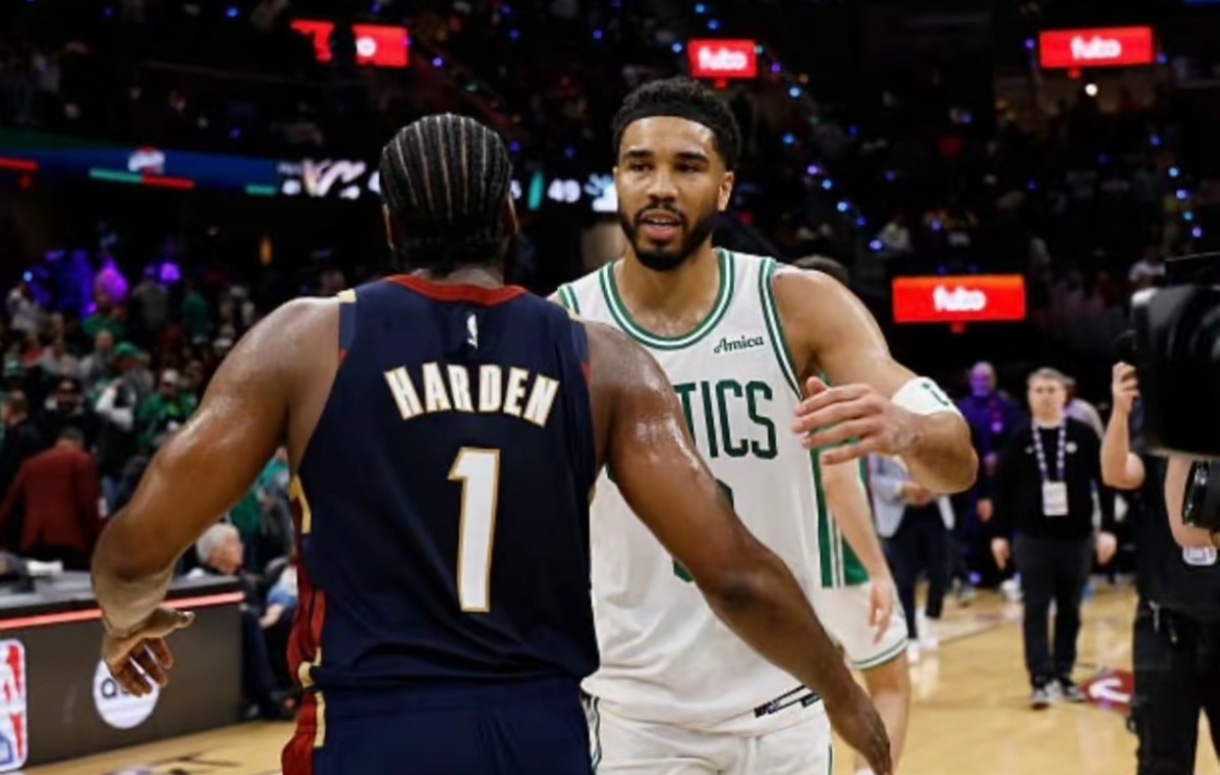 米切尔和哈登这对后场全明星,在“双探花”塔图姆和杰伦·布朗面前黯淡无光;
