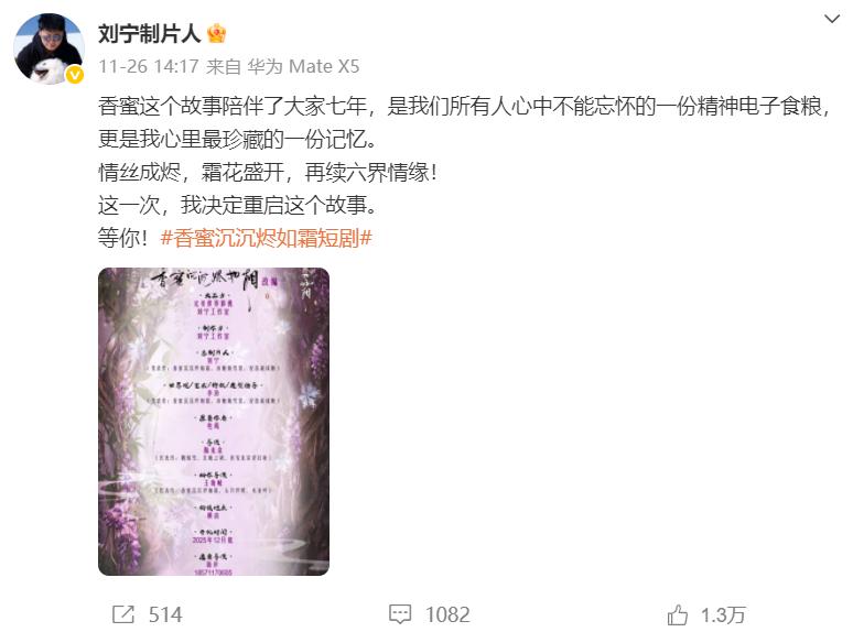 前不久,制片人刘宁发出消息:《香蜜沉沉烬如霜》陪伴大家七年……这一次,我决定重启这个故事!确定短剧《香蜜沉沉烬如霜》将开始拍摄的消息,紧接着,网上传出消息,在短剧中,润玉将变成男主。