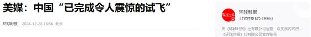 环球时报2024-12-28——美媒:中国“已完成令人震惊的试飞”