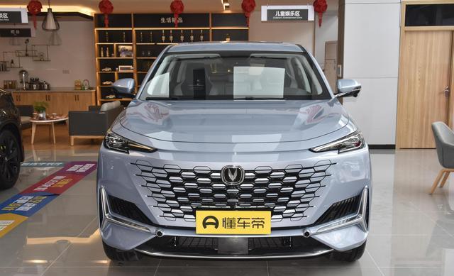 长安UNI-K 智电iDD造型延续燃油版,前脸未来感强,无边界格栅设计高辨识度,两侧保险杠采用运动风格格栅处理。