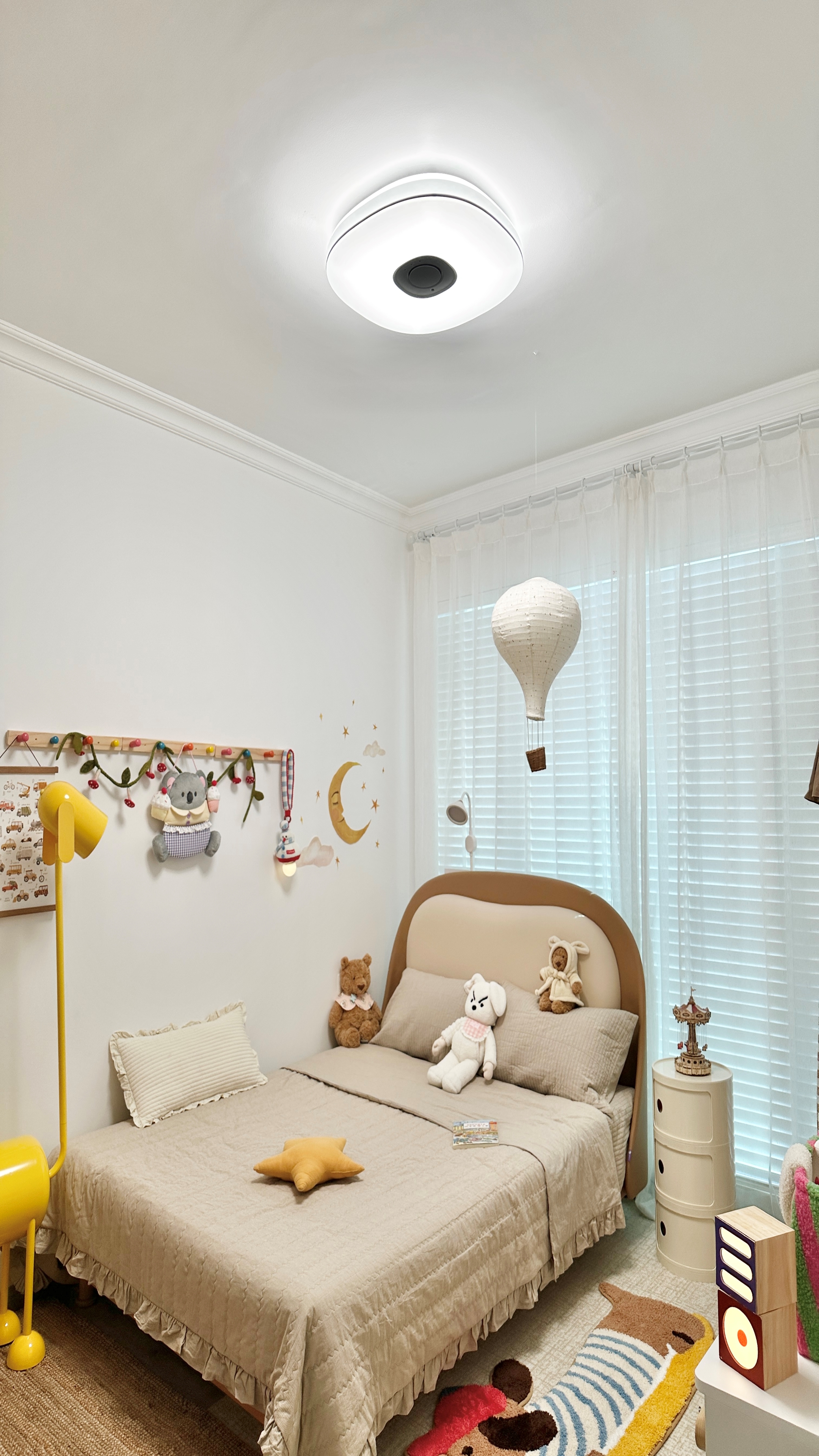 儿童护眼吸顶灯的智能控制,本质上是针对儿童视觉生理特征,进行的操作优化与空间照度管理。明基Aora全空间大主灯支持接入米