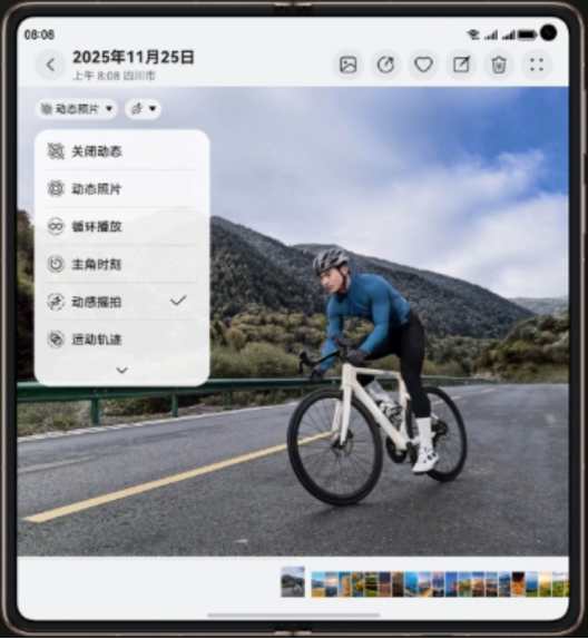 此外,华为Mate X7还支持“一拍多得”功能,让用户在面对转瞬即逝的精彩瞬间时无需纠结。只需按下一次快门,手机便能自动生成至少一张照片或一组关联图像数据,随后便可在编辑界面自由切换不同风格,享受更高的创作自由度。其大屏AI辅助构图功能也相当实用——只需跟随屏幕上的AI引导线调整拍摄角度,即可轻松获得构图专业、主体突出的高品质画面。而“一键成片”功能则让日常记录变得更简单:选择素材后,系统可自动生成个性化短片,轻松打造属于自己的Vlog。