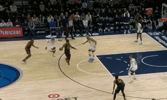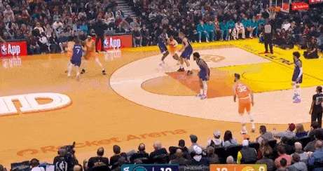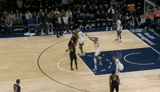回头观察见杰登没有回追二次纠缠,戈贝尔也没有上提干扰,立即炸球后完成脚步重置,