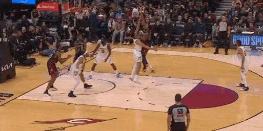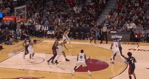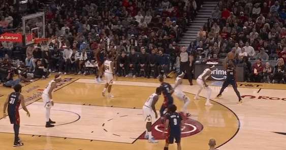 立即合球起步抛投打进。顶着沃特森领防、皮克特刷卡、布朗篮下协防封堵突破路线,三人围剿硬解得手。