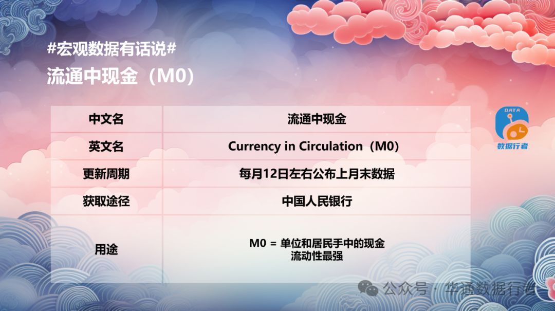M0即“现金”,是指流通于银行体系外的现金,也就是单位和居民没有存入银行的现金。其中的“单位”指银行体系以外的企业、事业、机关、团体、部队等单位。包括纸币、硬币、数字人民币(新纳入)、支付机构备付金都是M0的范畴。微信、支付宝中的余额,也都计入M0。