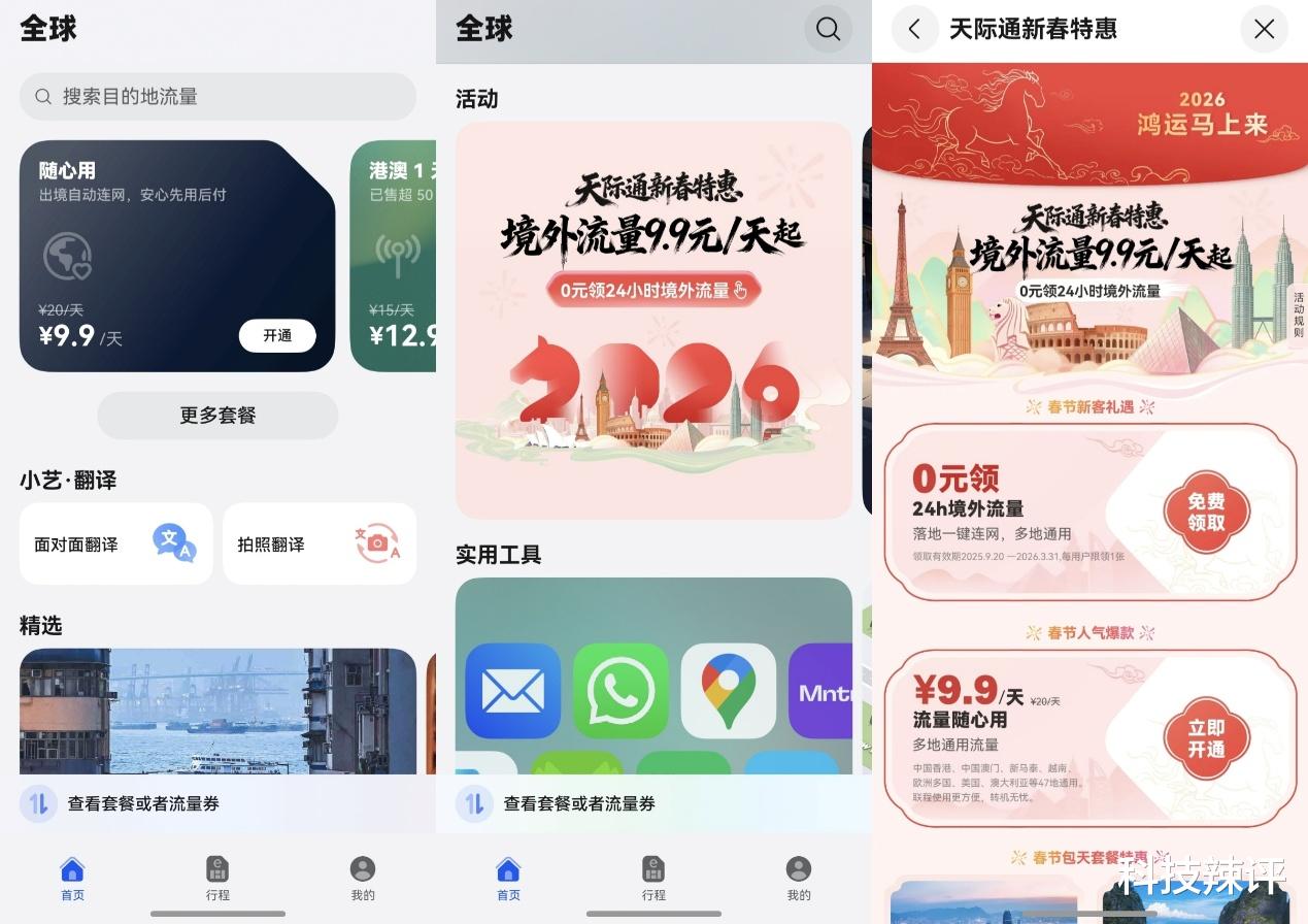 搞定了行程,再解决头等大事:境外上网!大家是不是还在照着攻略到处淘宝买流量卡啊?太费事了!告诉你一个不用换卡,不用租移动WiFi的妙招——打开华为天际通,选择目的地选择流量包,落地就能自动联网。而且现在活动巨划算,每天只要9.9元就能多地流量随心用,你想去的目的地几乎都能覆盖到,要是想畅玩欧洲甚至不用来回换套餐,一个套餐包圆,直接无缝衔接。更绝的是支持热点分享,开一个号,全家人都能连,省钱又省事。春节期间,它还有0元领24小时流量活动,大家可以根据自己的目的地灵活选择套餐!