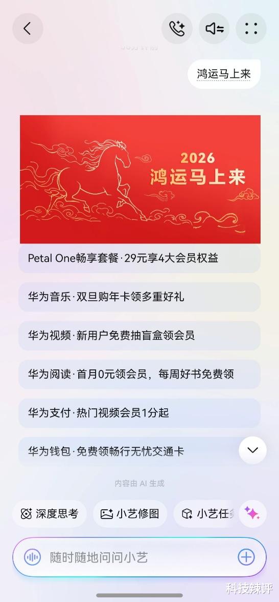 对了,现在升级鸿蒙6,然后长按底部导航条唤醒小艺,说出口令词“鸿运马上来”,就能一键直达鸿蒙好礼专区,赶快行动起来领取你的鸿运好礼吧!这个春节,咱们不仅要玩得嗨,更要玩得聪明、玩得从容!