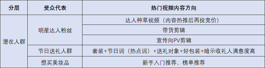 2️⃣以潜在人群为目标的热门视频内容方向: