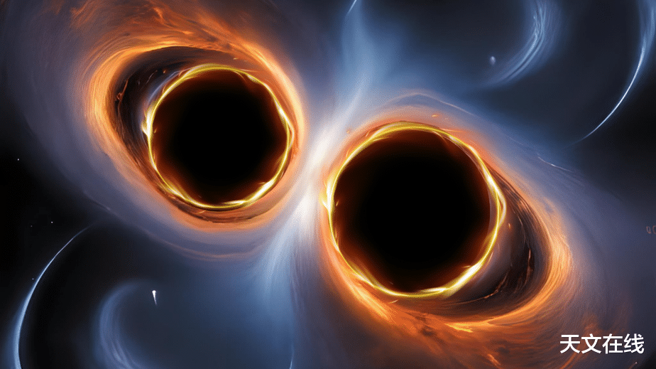 两个黑洞的碰撞和融合。(图源:罗伯特李(使用Canva制作))
