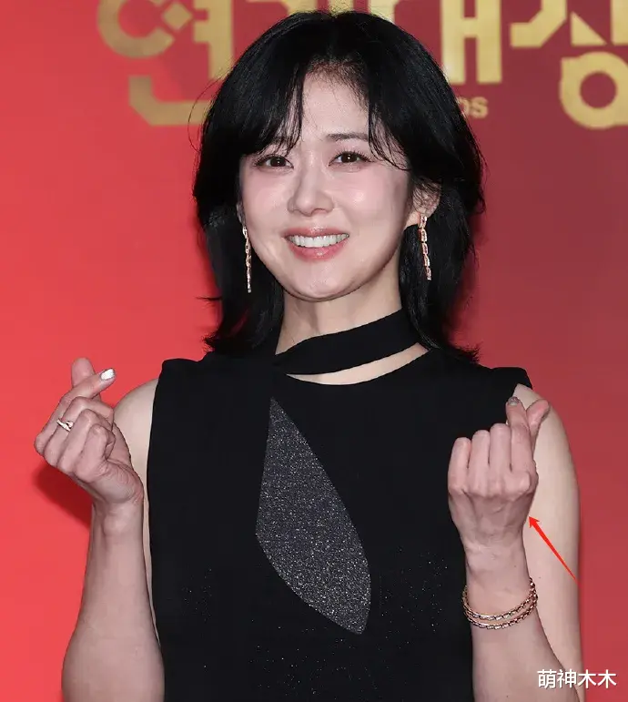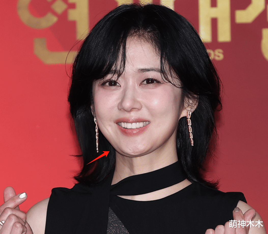 看怼脸图,张娜拉皮肤光滑几乎无瑕疵,也就是眼角有零碎的小细纹,可以忽略不计。再就是下巴肉,有小双层,但不影响整体。最主要的是张娜拉的脸很有元气美,完全没有中年人的疲态,苹果肌饱满自然,眼神也很有活力。