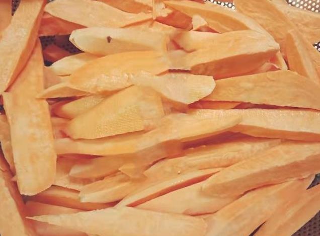 3、关火之后,立即将红薯条摆到透气的地方,晾晒个2--3天,初步变干时收起来。