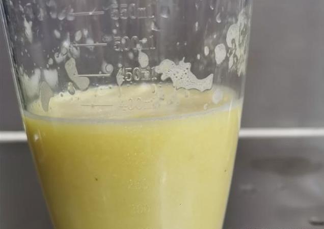 2、生姜中的纤维比较多,我们先将其切成小块,装进料理机,多搅打几次,确保其变为质地细腻的姜蓉。
