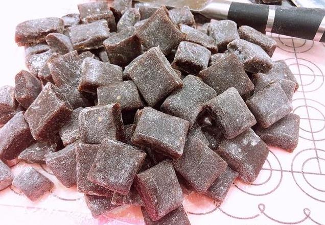 6、带有一些温度时其质地会软一些,切着更容易。我们一点点切好即可。可以裹上糯米纸,也可以直接装进罐子里。保持干燥密封,放在阴凉处即可。每一块都香甜可口,营养满满。