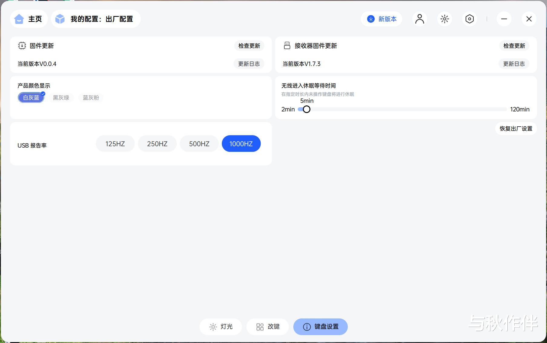 最后要说的是这把键盘拥有高达10000mAh的超大电池,并且最高支持1000Hz的报告率,延迟低至1ms。设置为长续航状态下充满电可以连续使用1700小时,即使是开着RGB +1000Hz高回报率的出厂状态,依然拥有160-180小时的续航。而且以我以往的惊艳,雷柏的电池管理一直做得很不错,平时断断续续使用的掉电会非常慢。