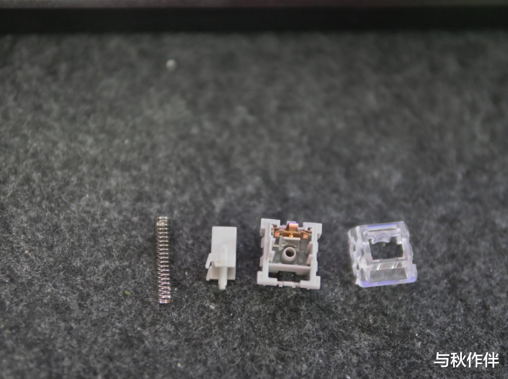 出厂做了比较轻微的润滑,长弹簧设计,弹片上也进行了镀铜。薄润轴体的优势是长时间使用手感不会有明显下降,但需要轴体出厂有比较高的精度来确保顺滑,而精度恰恰是凯华这种大厂产品完全不用担心的,并且凯华这些中端以上的轴体的使用寿命也是完全可以放心的,不用担心用久了双击或者断触。