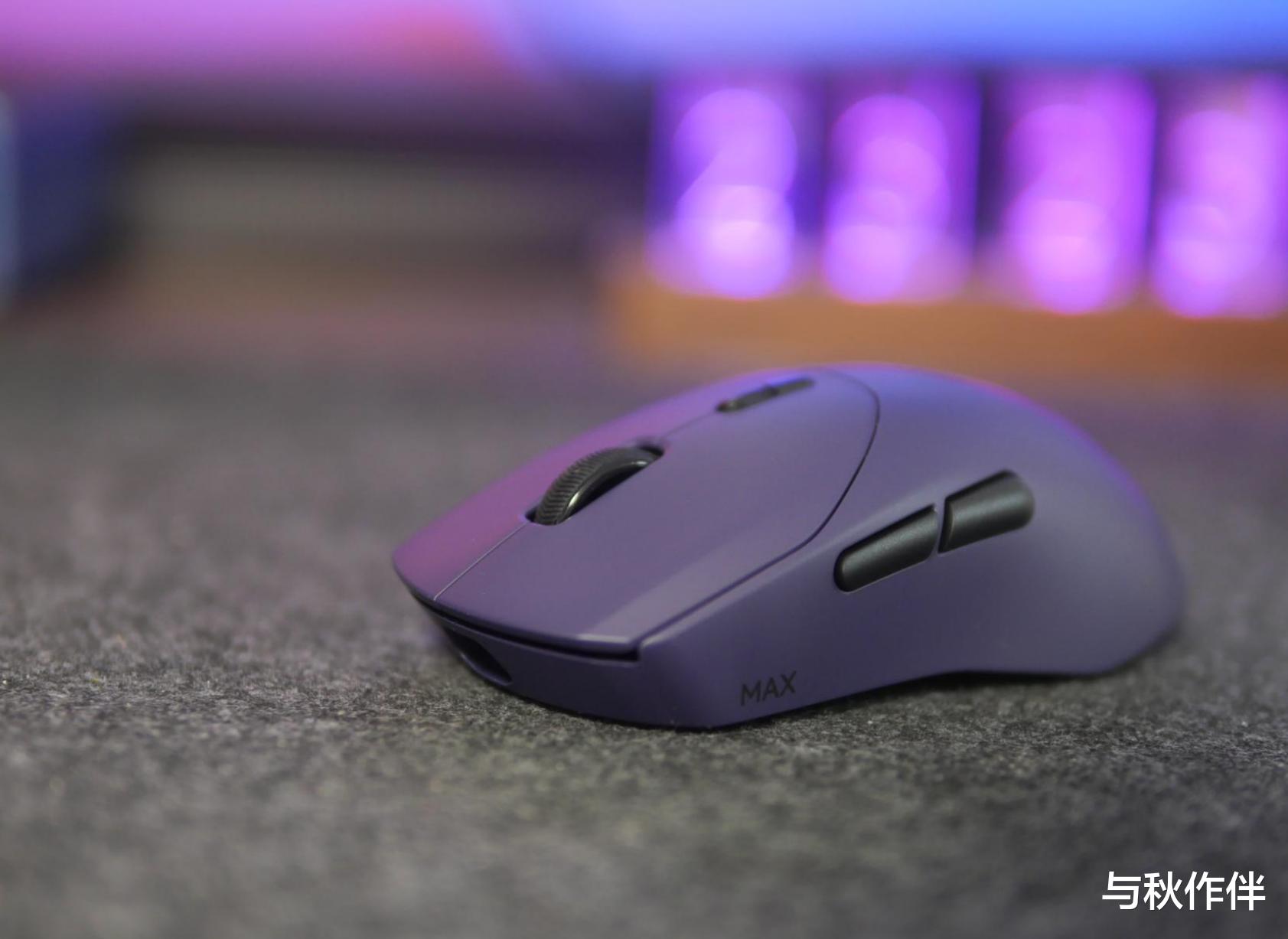 这款电竞感十足的电驭紫配色的鼠标表面有一层薄薄的亲肤防滑涂层,表面细腻干爽,如果你打算购买这款鼠标,我强烈推荐购买这款配色,除了帅气之外,手感也是相当惊艳。