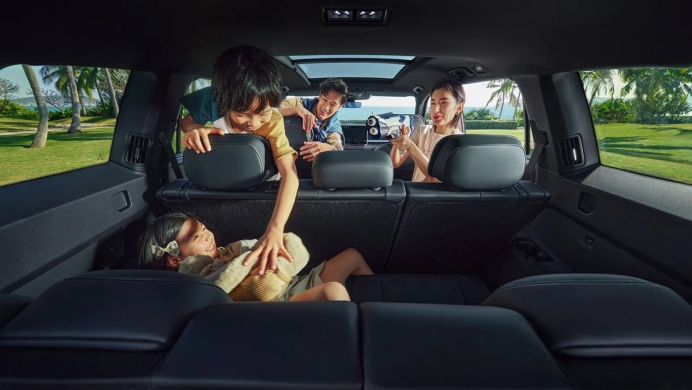 细节方面,令用户印象最深刻的,就是它的后排座椅支持电动打开放倒,形成纯平的大床。这对于大7座SUV来说,越野露营非常的便利。