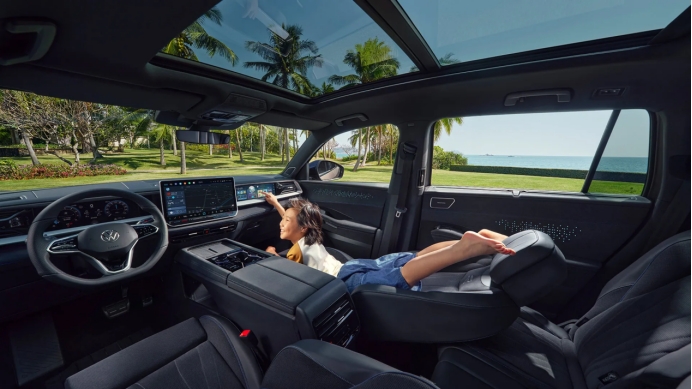 途昂Pro采用云柔环抱座椅,柔软且支撑性良好,久坐也不会累。前排具备加热、通风、按摩功能,副驾是零重力女王座驾。二排座椅带加热,可前后移动20cm,轻松翘二郎腿。