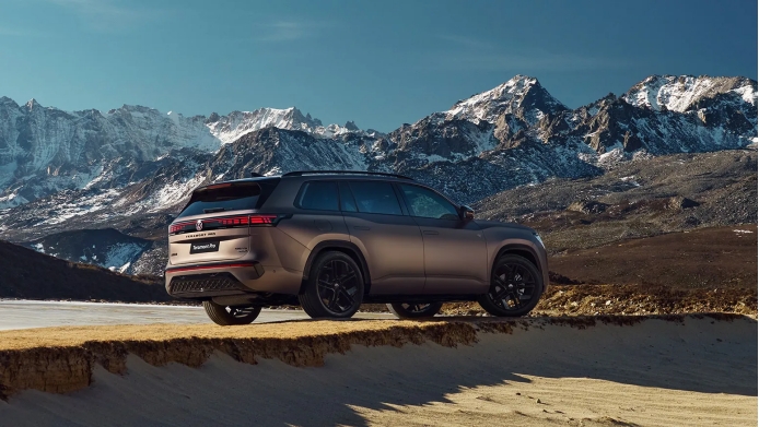 “山景悠远”车尾,上部尾翼配高位刹车灯,中部是隆起的雪山状贯穿式矩阵LED尾灯,以“长虹贯日”之势拱卫“大众”徽标为主,下部象征着地平线的LED灯带为辅,配以黑色网状下护板,主次、明暗和虚实的对比,首尾中网的呼应,写实又写意。一句话,车尾更好看。