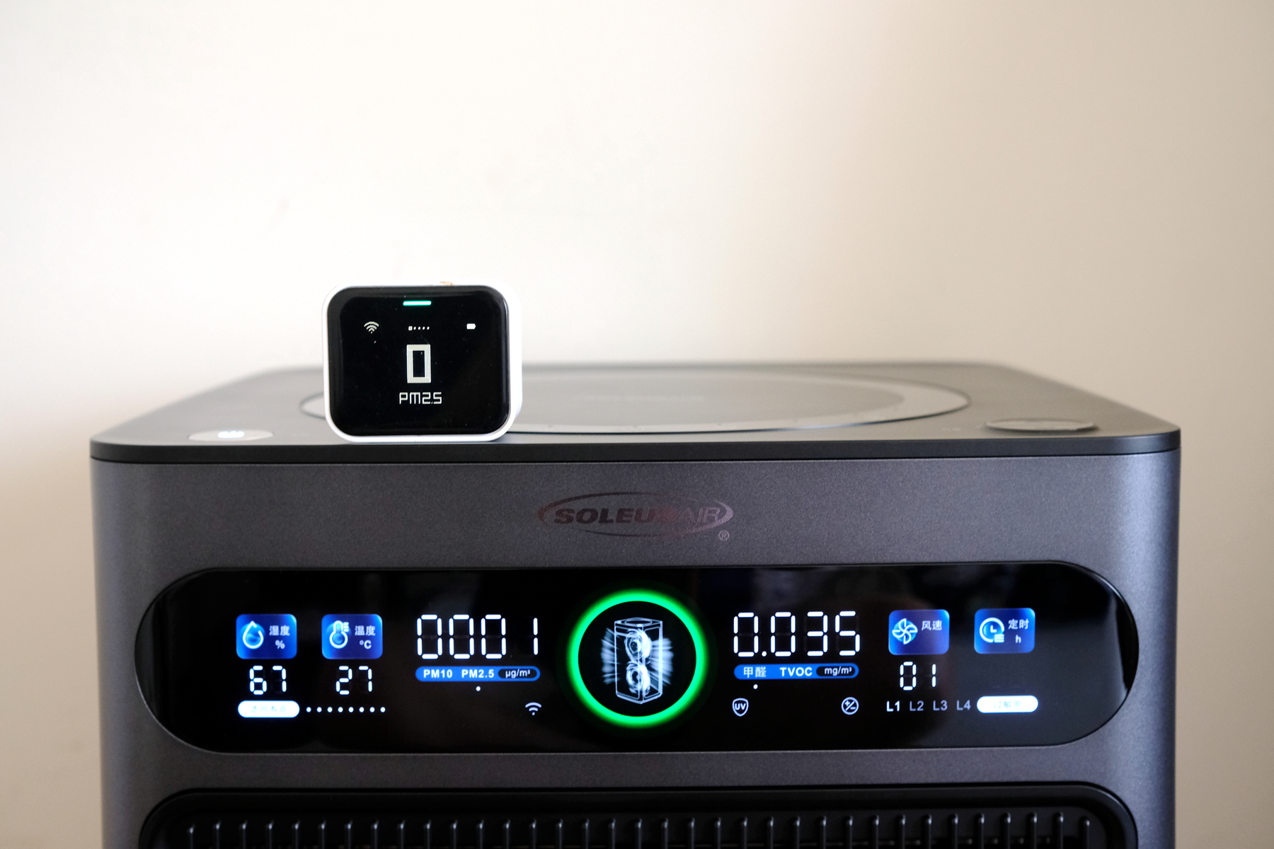 对于我家的日常来说,只需要开启最小的1档风速就能在很短的时间净化到理想效果,经过舒乐氏全效空气净化器G20过滤后的PM2.5数值只有0001,而我的空气监测仪更是显示PM2.5为0,充分说明了G20的极致净化能力。