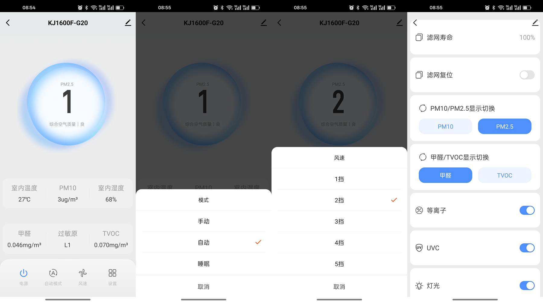除了传统的按键操控,舒乐氏全效空气净化器G20自然也是支持手机APP全功能远程超控,我们在外面的时候或者躺平不想动的时候,用起来也是如臂使指。