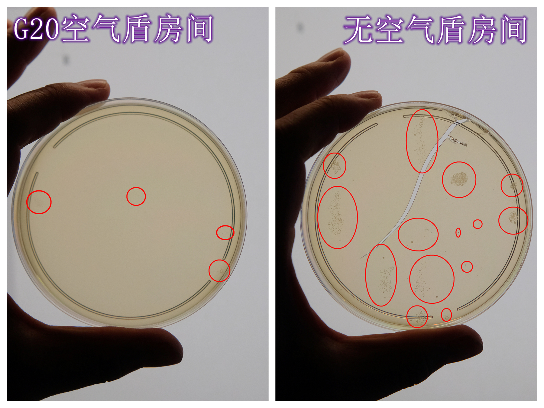 经过1天后,两个培养基的差异,在我看来还是比较明显的,在G20的作用下,主卧的培养基菌落要明显少于次卧的对照组。虽然我这个做法不够科学、严谨,但也能从一定程度上证明G20的空气盾确实有效。
