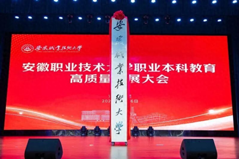 在全体嘉宾与全校师生代表饱含期待与热忱的目光中,承载着二十余万安职大人梦想与光荣的红绸布缓缓庄重落下,镌刻着“安徽职业技术大学”校名的牌匾正式亮相,安徽职业技术大学正式成立,标志着安徽省公办职业本科学校实现了零的突破。