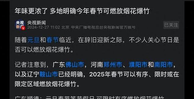 看着每年过年的时候,电视上放的那些“年味特足”的场景,咱们是不是开始琢磨,那些慢慢没了的春节习俗会不会永远离开咱们?不过呢,起码在今年,有一些城市放宽了烟花爆竹的禁令,给咱们的春节添了不少热闹劲和色彩。