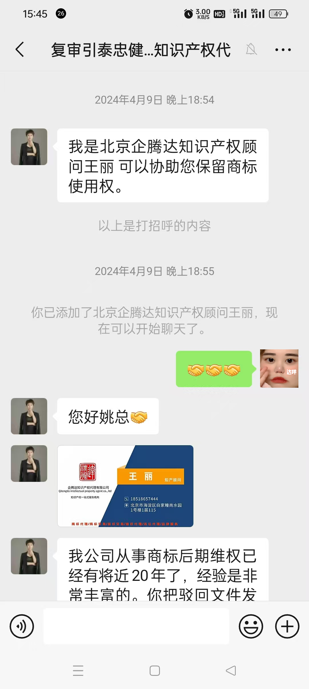 在对接过程中,企腾达明确承诺将由“金牌双证律师”提供一对一文案服务,但在客户委托后,并未出具任何律师委托手续,也未提供实际律师对接。