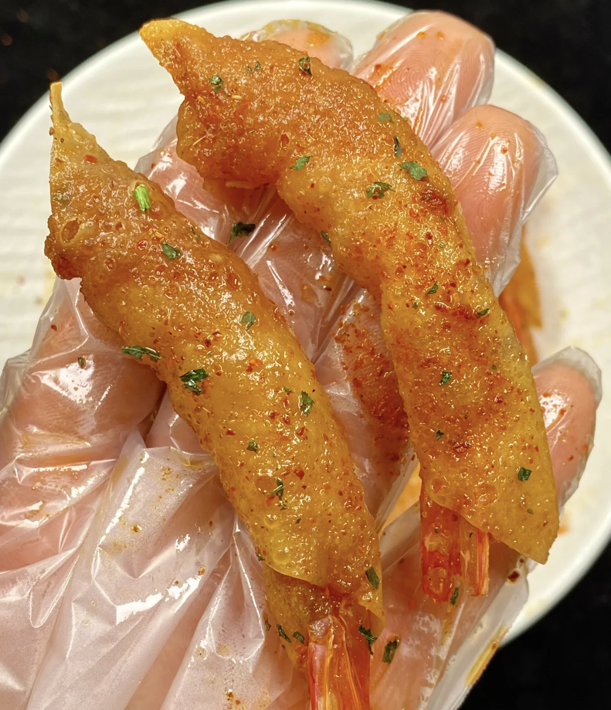 炸制的时间不需要太长,大约3-4分钟,虾肉就会变得金黄酥脆。炸好的虾肉捞出,放在厨房纸上吸去多余的油分。这样不仅可以减少油腻感,还能让虾肉的口感更加酥脆。