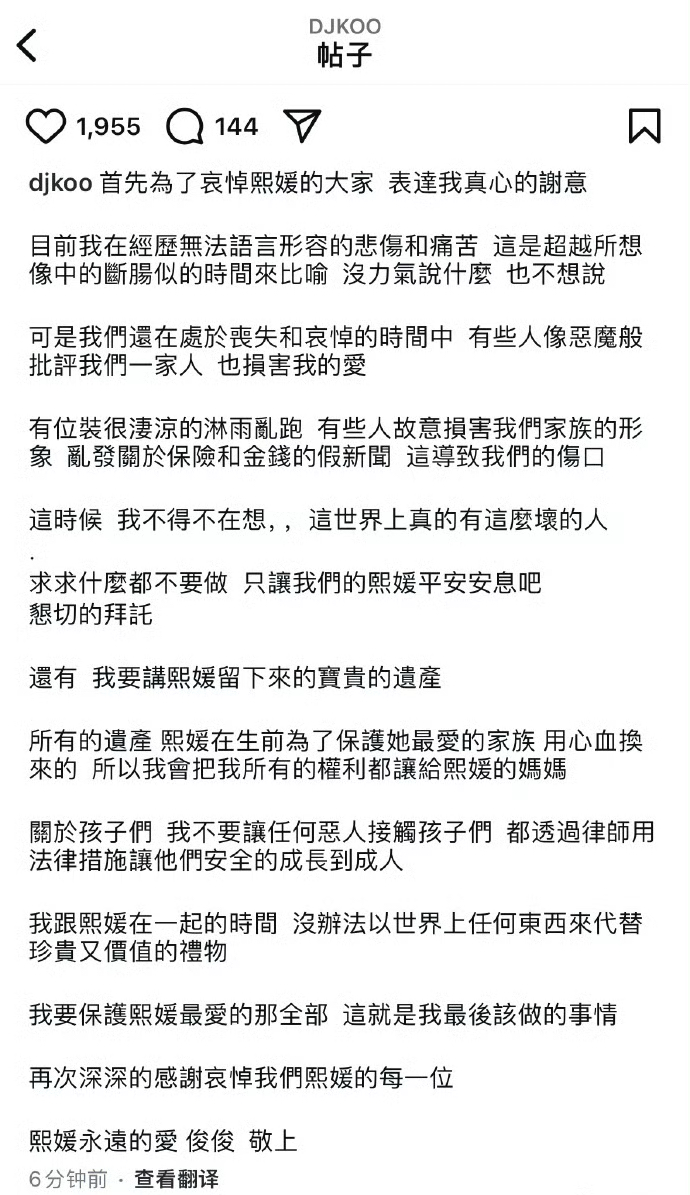 最重要的是,具俊晔在文中表达放弃遗产争夺,信誓旦旦地保证交给S妈继承,如此大无畏的精神,属实让外界刮目相看。