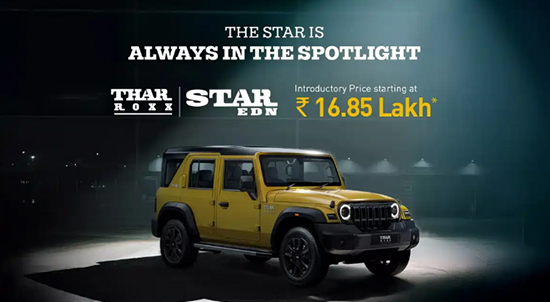 日前,车质网从相关渠道获悉,印度品牌Mahindra发布了Thar Roxx Star车型的特别版官图。新车的外观设计致敬了Jeep牧马人,特别版车型的起售价为18400美元(约合人民币12.78万元),普通版入门价格为10900美元(约合人民币7.57万元)。个性的外观设计以及亲民的价格使其备受消费者喜爱,毕竟在印度如果想购买一台真正的Jeep牧马人,售价高达74500美元(约合人民币51.75万元)。