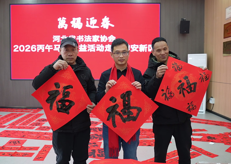 启动仪式结束后,来自京津冀三地的书法家们挥毫泼墨,现场书写春联与福字,送给中国中化、中国矿产、中国大唐、中国华电等疏解央企的干部职工代表,以传统年俗文化向在雄安过年的疏解干部职工表达新春问候。同时,河北省文艺志愿者在中国中化大厦报告厅带来了精彩的慰问演出。婉转的歌声、优美的舞姿、鲜活的曲艺表演接连登场,为疏解单位代表及建设者送来了一场精彩纷呈的文化盛宴,现场掌声不断,气氛热烈。