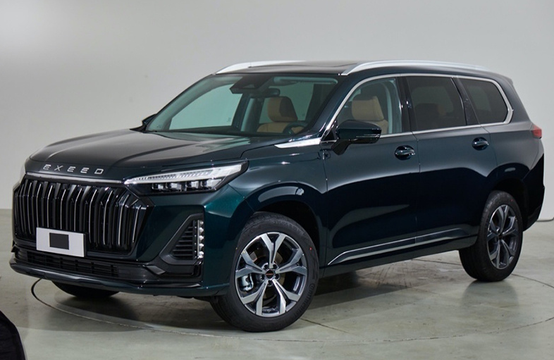 车身侧面,修长的车身线条营造出一种稳重而又不失优雅的气质。5010mm 的车长、1940mm 的车宽和 1800mm 的车高,以及 2900mm 的轴距,让它在同级别车型中脱颖而出,展现出强大的气场。大尺寸的多辐式轮圈,搭配上镀铬窗框和银色装饰条,不仅提升了整车的豪华感,还让它在行驶过程中更加引人注目。从 A 柱向前延伸的金属饰条带有 “EXEED” 标识,细节之处彰显品牌魅力。