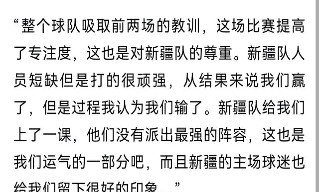 夸新疆队,夸新疆球迷,反正好话都让他说了。