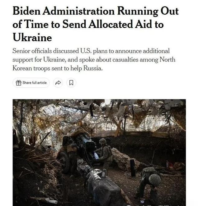 《纽约时报》援引美国官员的话报道称,拜登政府很可能在卸任前无法完成向乌克兰提供56亿美元军事援助的承诺,"我们将在本届政府任期结束前继续提供援助,但56亿美元是一笔很大的授权,所以我认为仍会有授权移交给下一届政府",问题在于,在特朗普就任美国总统后,是否仍会继续军事援助乌克兰,又或者是停止对乌克兰的军事援助?