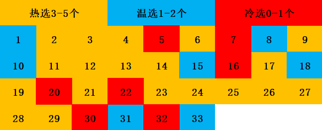 通常情况下热号3-5个,温号1-2个,冷号0-1个。