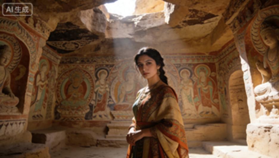 更有趣的是无名工匠的“彩蛋”:龙门石窟有石匠刻下“日赚三斗粟”,堪称最早“打工人工资条”;莫高窟飞天从“西域猛男”进化成“唐朝小仙女”,飘带飞舞仙气十足。