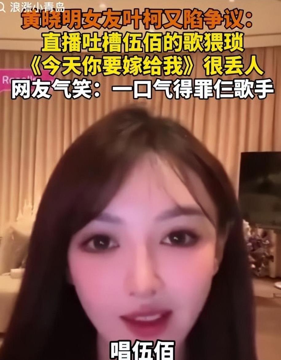 近期内,她在直播间内又对著名歌手伍佰的歌曲发表了批评和调侃,指责其歌曲《今天你要嫁给我》过于下流,并直言不讳地指责他得罪了一大群人。