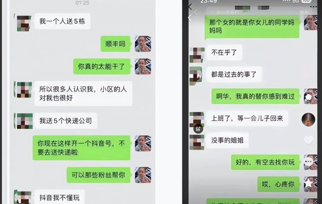 在被曝光的聊天记录中显示,许健华明确表示不想要伸手问谢岳要钱,自己可以赚钱养孩子。她在与朋友的对话中也提到,自己送五栋楼的快递,小区的业主们也都认识她了,对她很好。