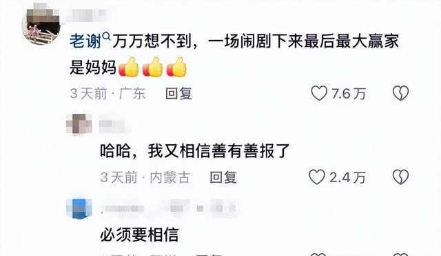 不少网友都说谢妈是最大的赢家。网友们纷纷支持她,认为她是一个很好的人,一直保持着体面。