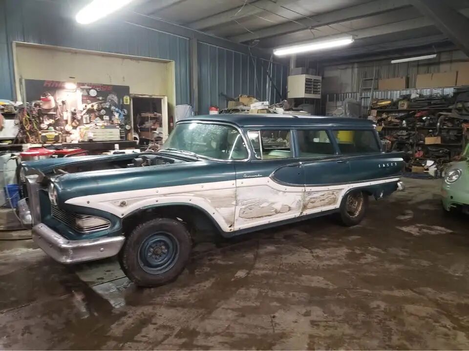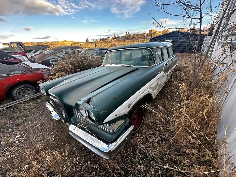 卖家介绍,这台车目前缺少散热器和传动系统,不过原厂发动机仍然保留,只是已经从车上拆下并需要彻底重建,但所有部件均齐全。这台361立方英寸V8发动机在新车状态下可以输出303马力与400磅英尺,约542牛米的扭矩,动力表现在当年属于十分强劲的水准。这台Edsel Bermuda位于怀俄明州的罗克斯普林斯,卖家给出的售价为14000美元,并且坚持只接受现金、不接受任何置换交易。
