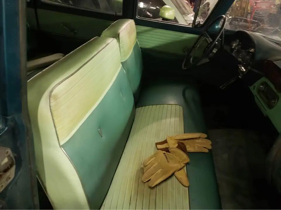 这台车的外观与内饰结构相对完整,但想要恢复当年的光彩状态必须进行全面修复,目前无法确认它是否在某个时期重新喷过漆,不过单色绿色漆面的状态并不算差,卖家还表示这一颜色本身也属于稀有配色,只是车身侧面的仿真木纹装饰件需要大量修复工作。车内采用双色绿色内饰,整体状态还算不错,座椅包覆部分没有出现大面积破损,仅后备箱区域需要重新整备,从提供的照片来看,车身的锈蚀面积也比较轻微。
