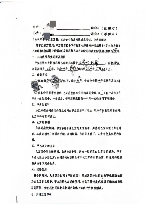 (土地租赁合同,王二狗提供)