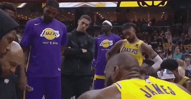 本场比赛末节还发生了有趣的一幕,暂停期间镜头给到湖人替补席,发现詹姆斯居然在战术板上画战术,而暂停结束回到场上后,戴维斯一个高吊球给到空切的詹姆斯,成功完成上篮,将这个战术打成。