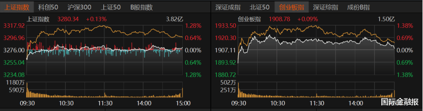 4月17日,A股缩量震荡。截至收盘,沪指收涨0.13%报3280.34点,创业板指收涨0.09%报1908.78点。科创50、上证50、北证50均微红,沪深300微跌。
